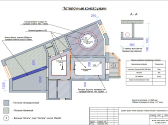 - План потолка с указанием используемого материала и привязкой размеров;