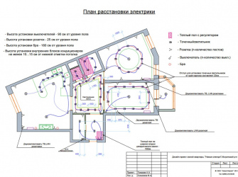 - План размещения электрического подогрева пола, терморегуляторов, с привязкой размеров;